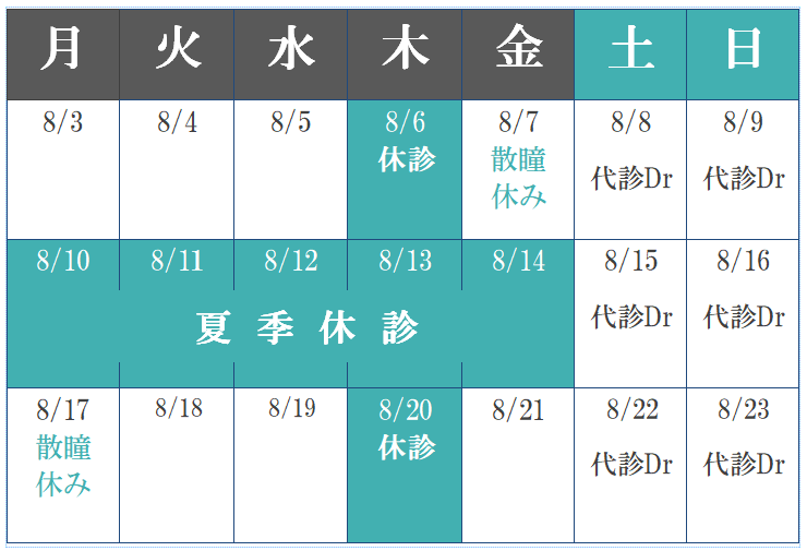 休診前後の8月7日(金)・8月17日(月)は、