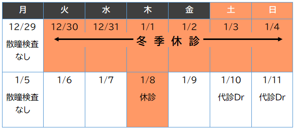 1月5日(月)は、定期的な【精密散瞳眼底検査】はお休みいたします。